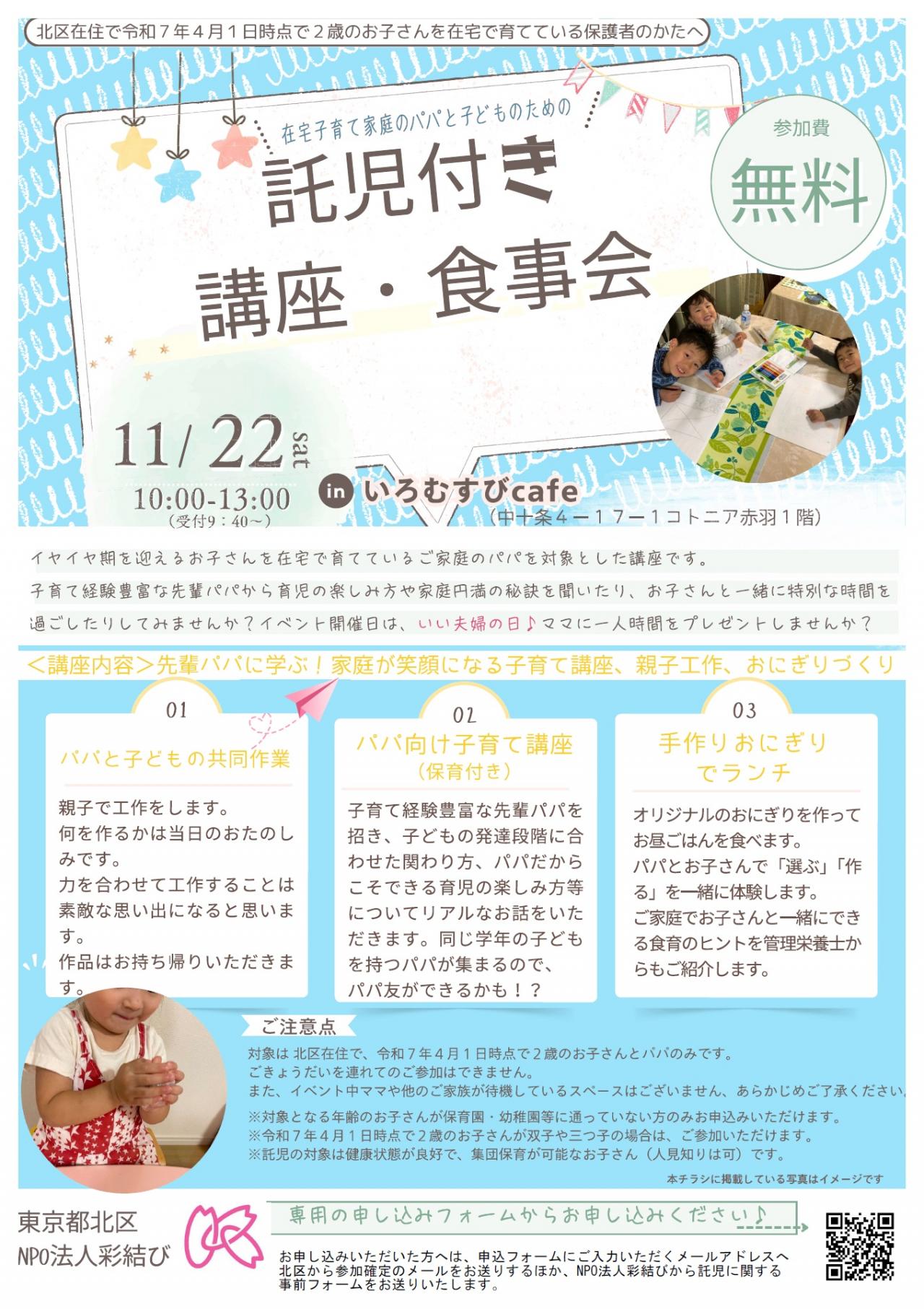 【対象】北区在住で、令和7年4月1日時点で2歳のお子さんを在宅で育てている家庭のパパ